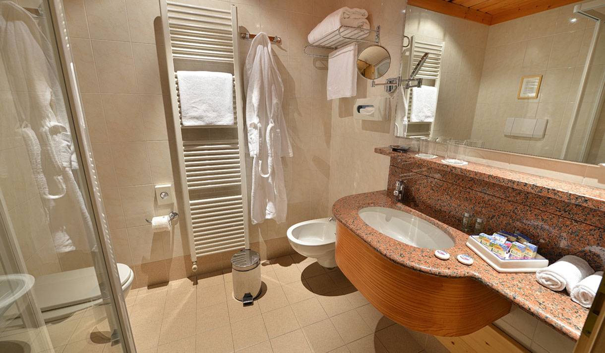 Il bagno è dotato di doccia, asciugacapelli, morbidi asciugamani e accappatoi. Troverai un set di cortesia completo (sapone, cuffia, creme e beauty kit) e, su richiesta, forniamo anche il set spazzolino e dentifricio.